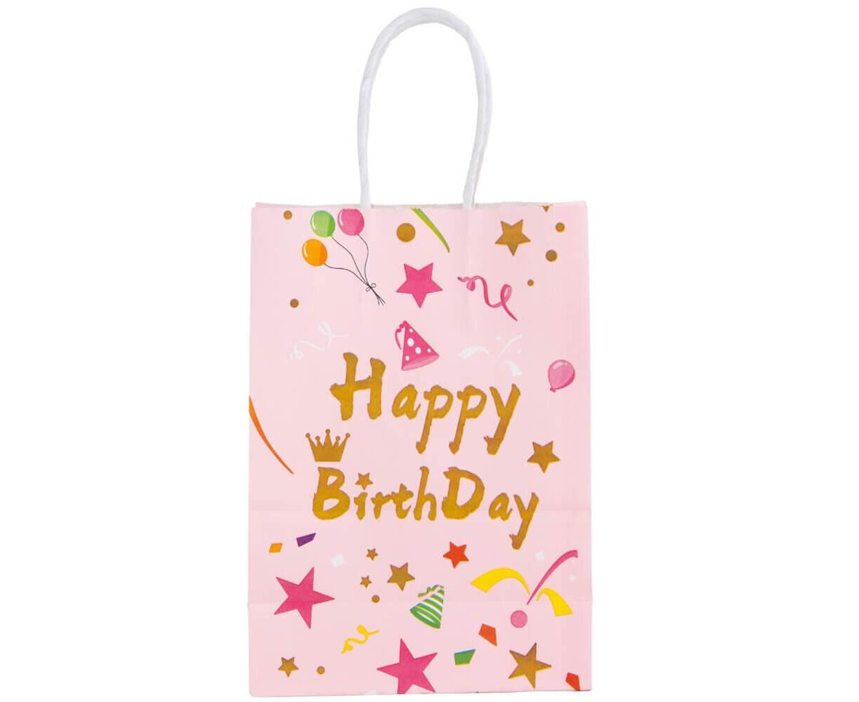 Подарочный пакет "Happy birthday", розовый, 21*15*8 см