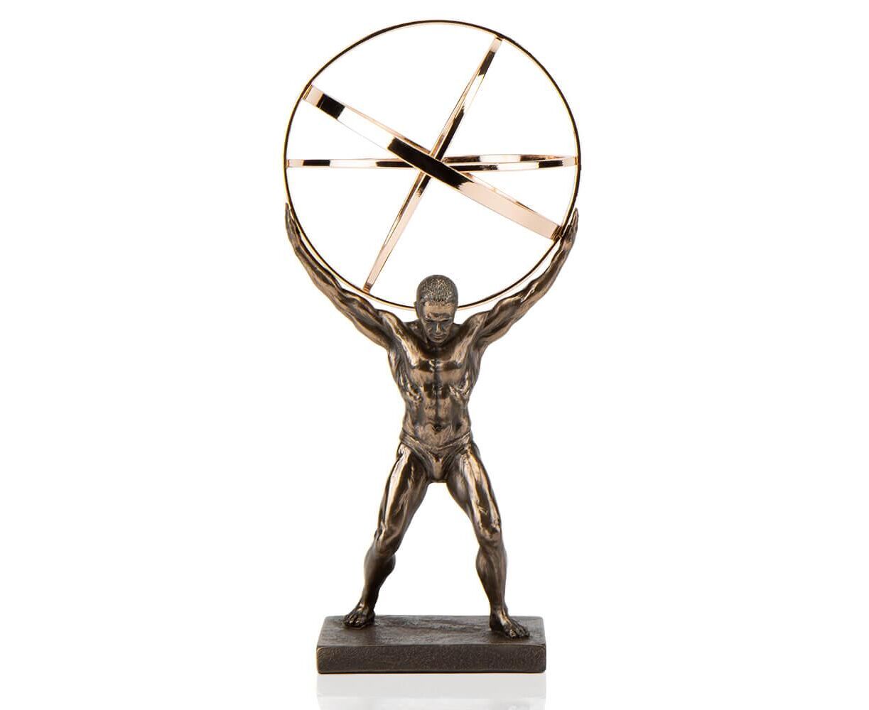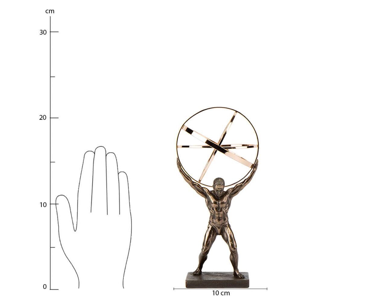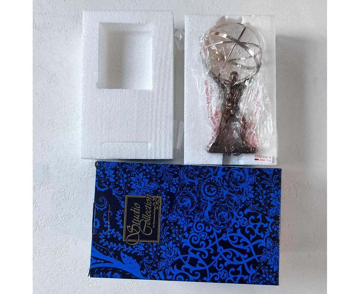 Ищите идеальный подарок? Коллекционная статуэтка Veronese «Атлант» 22 см. именно то, что вам нужно. Эта статуэтка изображает сюжет древнегреческой мифологии, в котором Атлант держит на своих плечах небесный свод. Атлант символизирует силу и мужество человека, на плечах которого лежит груз ответственности. Это прекрасный подарок руководителю, папе и всем кто занимает руководящую должность и демонстрирует качества лидера. Статуэтка изготовлена из полистоуна (искусственного камня) и покрыта бронзовым напылением. Упакована в красивую подарочную коробку. Так что, покупая эту статуэтку, вы получаете ценный и красивый подарок, не требующий дополнения. Благодаря надежной внутренней упаковке, изготовленной из пенопласта с углублениями для самых маленьких деталей, Вы можете быть уверенными в сохранности при транспортировке. Высота статуэтки – 22 см. Ширина – 10 см. Длина – 10 см. Диаметр шара – 10 см. Высота Атланта – 12 см. Подставка 8х6х1 см. VERONESE