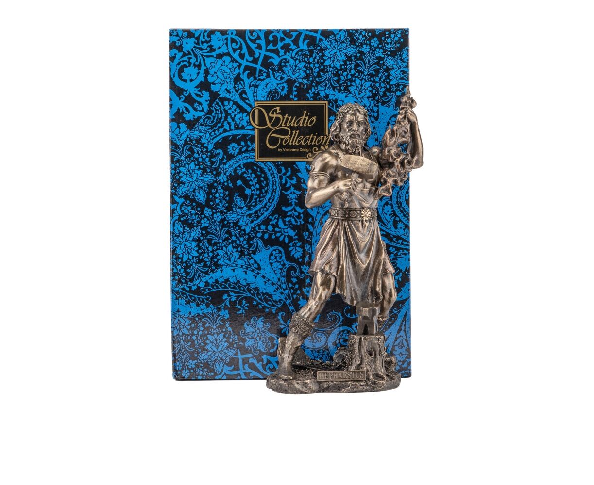 Статуэтка «Гефест» - символ покровителя кузнечного ремесла, бог огня и металлических изделий. Изделие изготовлено из полистоуна (искусственный камень), покрыто напылением из бронзы; и упаковано в подарочную коробку, что придает ему престижность и роскошь. Благодаря надежной упаковке, изготовленной из пенопласта с углублениями для самых маленьких деталей, Вы можете быть уверенными в сохранности при транспортировке. VERONESE