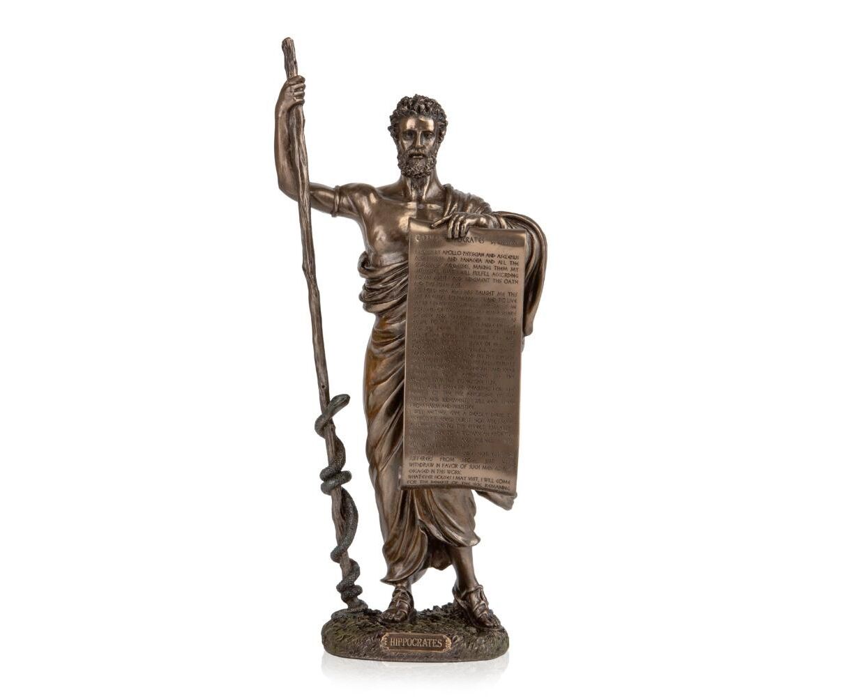 Статуэтка Veronese "Гиппократ" изображает сцену, в которой античный врач давал клятву, принимая обязанность придерживаться моральных и этических стандартов в медицинской практике. Гиппократ - это древнегреческий врач, который считался одним из пионеров медицинской науки. Статуэтка с детальной проработкой деталей никого не оставит равнодушным и может быть драгоценным подарком для медиков, коллекционеров и любителей античной культуры.Статуэтка изготовлена из полистоуна (искусственного камня) и покрыта бронзовым напылением. Упакована в красивую подарочную коробку. Поэтому покупая эту статуэтку, Вы получаете ценный и красивый подарок, который не требует дополнения. Благодаря надежной внутренней упаковке, изготовленной из пенопласта с углублениями для самых маленьких деталей, Вы можете быть уверенными в безопасности при транспортировке. Высота статуэтки - 33 см, ширина - 15 см, длина - 8 см. VERONESE