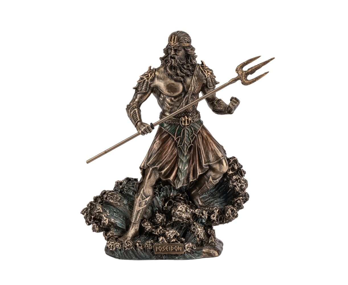 Бог морей – Посейдон. Он один из трех главный Олимпийский богов вместе с Зевсом и Аидом. Посейдон со своей женой Амфитритой обитали на морском дне в роскошном замке. В его руке всегда находиться трезубец, которым он вызывал бури и штормы, разбивал скалы и ударял по земле, что приводило к образованию родников пресной воды. Такой подарок прекрасно подойдет для босса, руководителя, коллеги, друга, учителя истории. Статуэтка изготовлена из полистоуна (искусственного камня) и покрыта бронзовым напылением. Упакована в красивую подарочную упаковку. Так что, покупая эту статуэтку вы покупаете ценный и красивый подарок, не требующий дополнения. VERONESE