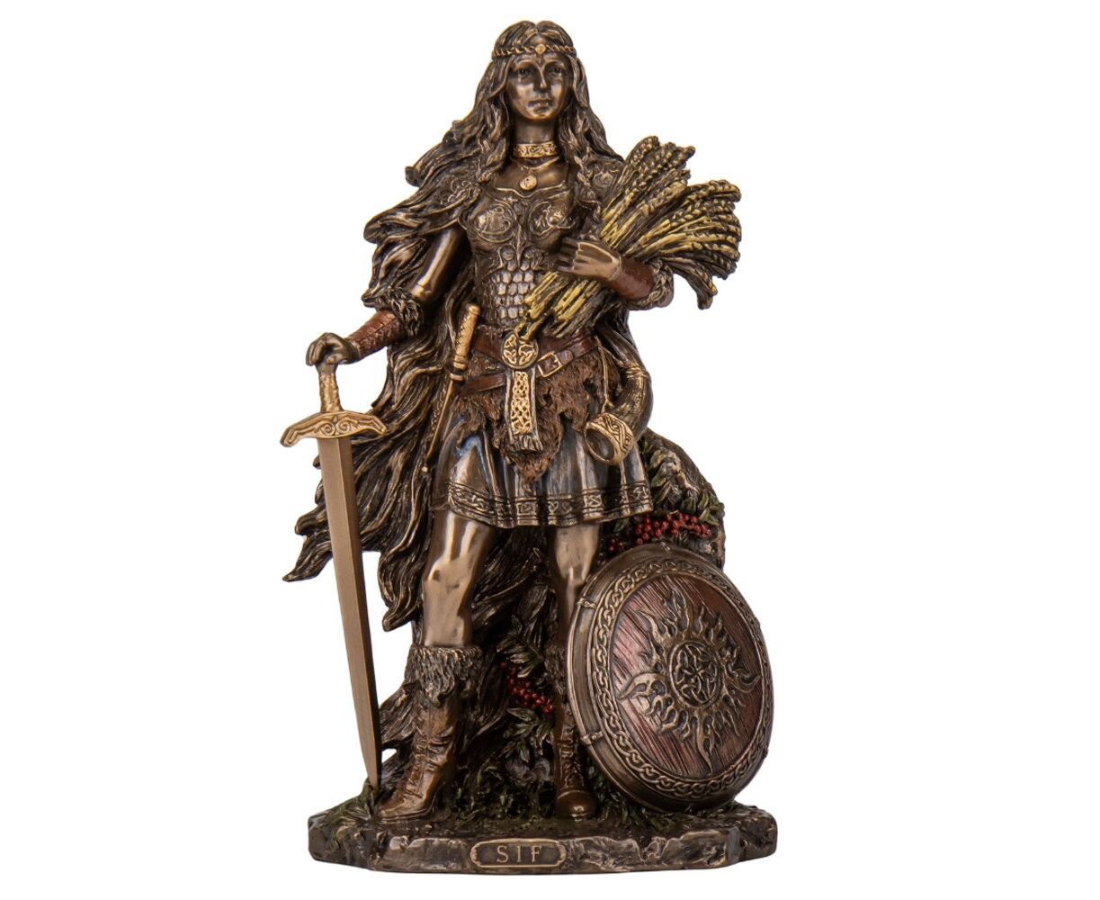 Высота статуэтки - 22 см, ширина - 7 см, длина - 14 см. Статуэтка Veronese изготовлена из полистоуна (искусственного камня) и покрыта бронзовым напылением. Сиф – это скандинавская богиня плодовитости, красоты и здоровья, известная также своими прекрасными золотистыми волосами. Статуэтка Сиф является изображением прекрасной женщины с длинными золотистыми волосами, что символизирует ее власть над плодовитостью и природой. Она держит в руках символ плодородия - пшеничные снопы, а также выражение лица, отражающее ее милосердный и бережный характер. Статуэтка Сиф может быть прекрасным подарком для тех, кто ценит мифологию и духовные аспекты, а также для тех, кто чтит природу и предпочитает эстетику и красоту. Она может служить как декоративный элемент в домашнем интерьере или как объект для медитации и спокойного размышления. Упакована в красивую подарочную коробку. Поэтому, покупая эту статуэтку, Вы получаете ценный и красивый подарок, который не требует дополнения. Благодаря надежной внутренней упаковке, изготовленной из пенопласта с углублениями для мельчайших деталей, Вы можете быть уверены в безопасности при транспортировке. VERONESE