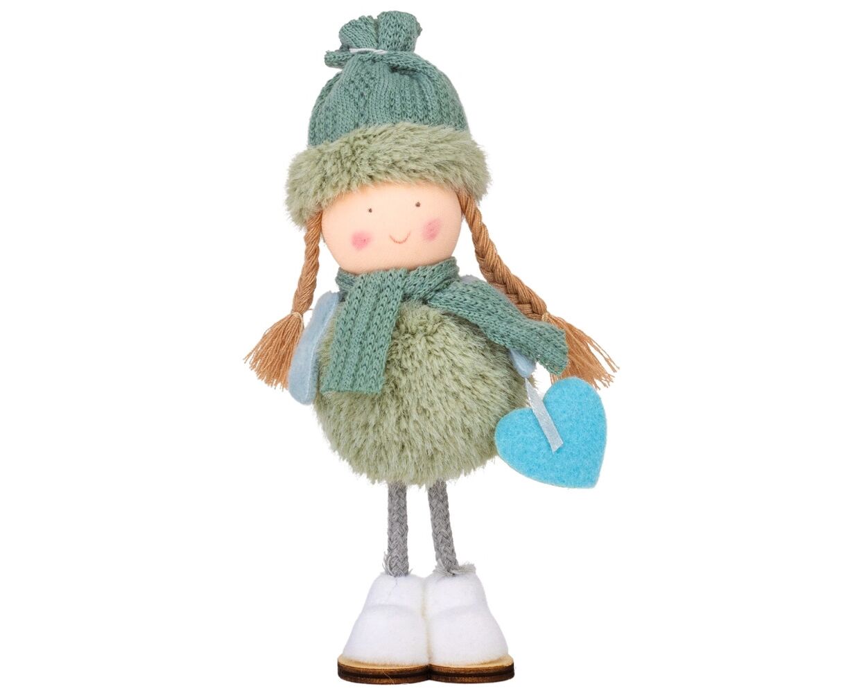 Милая текстильная фигурка своим внешним видом окутывает в сказочную атмосферу Нового года! Красавица покорит сердце любой девочки и станет источником радости в Вашем доме, магазине или фотозоне. Фигурка стойко стоит на подставке из дерева.
