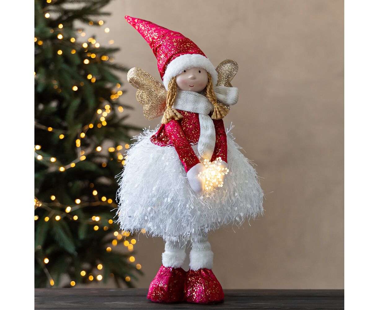 Высота - 70 см, ширина - 19 см. Мягкая текстильная новогодняя игрушка – это волшебный декор для праздничного интерьера, изготовленный из мягких и приятных на ощупь материалов. Нежные цвета и детали придают ей особый шарм и праздничное настроение. Игрушка оснащена подсветкой, которая создаёт ещё более тёплую и магическую атмосферу в вашем доме. Она идеально подходит для украшения елки, камина или использования в качестве подарка, что принесет радость и уют в каждый дом. Фигурка стойко стоит.
