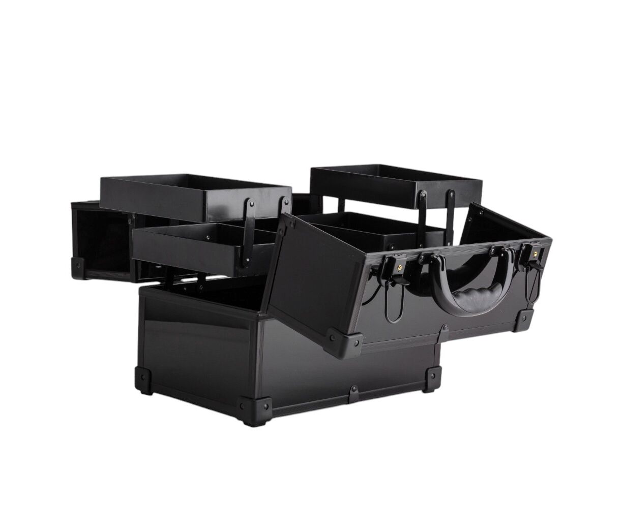Крепкий и стильный косметический кейс изготовлен из сочетания пластика и металла, обеспечивает надежную защиту косметики и аксессуаров. Благодаря раскладной конструкции с несколькими уровнями организации этот кейс позволяет удобно разместить все необходимые инструменты и средства для макияжа. Металлические замки гарантируют безопасность содержимого, а удобная ручка делает транспортировку легкой и комфортной. Идеальный выбор для визажистов, мастеров маникюра или просто для организованного хранения косметики на дому.
