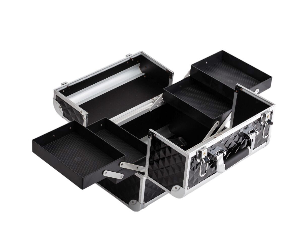 Крепкий и стильный косметический кейс изготовлен из сочетания пластика и металла, обеспечивает надежную защиту косметики и аксессуаров. Благодаря раскладной конструкции с несколькими уровнями организации этот кейс позволяет удобно разместить все необходимые инструменты и средства для макияжа. Металлические замки гарантируют безопасность содержимого, а удобная ручка делает транспортировку легкой и комфортной. Идеальный выбор для визажистов, мастеров маникюра или просто для организованного хранения косметики на дому.