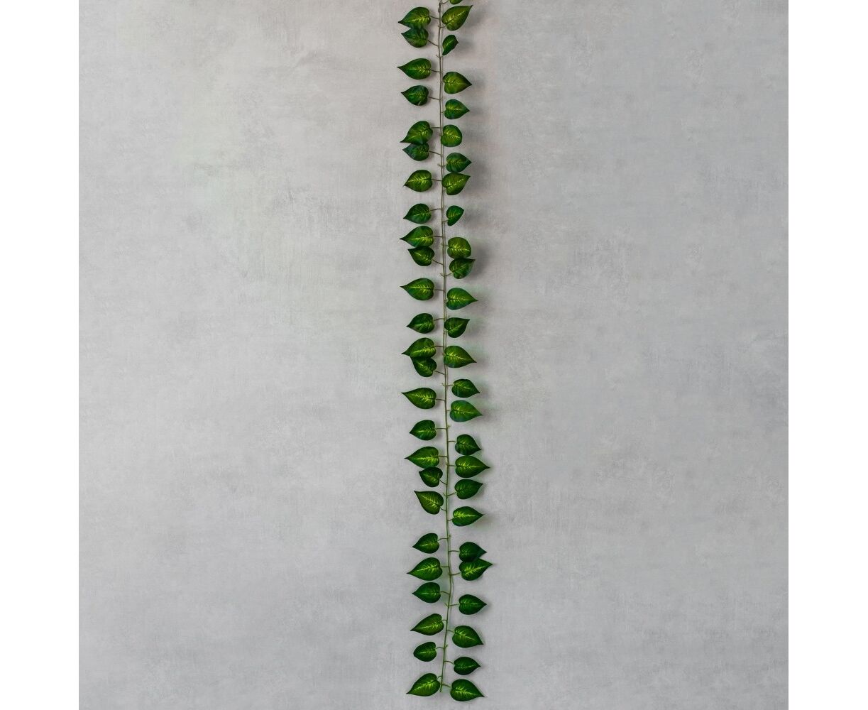 Длина – 190 см. Искусственная зеленая лиана – это отличная альтернатива живому растению, которое привлекает своей непревзойденной зеленью и естественным видом. Лиана имеет натуральную текстуру и цвет листьев. В отличие от живого варианта, искусственный не нуждается в регулярном поливе, обрезке или особом уходе. Вы можете наслаждаться его красотой без усилий. Искусственная лиана может быть использована для отделки интерьера дома, офиса, ресторана, гостиницы или другого помещения. Она придает уют и естественность любому пространству. Искусственная лиана сохраняет свой вид в течение длительного времени без утраты своей красоты. Гирлянда не выгорает на солнце и не теряет свою форму под влиянием времени. Этот декоративный элемент станет отличным дополнением к вашему интерьеру, позволяя создать неповторимую атмосферу уюта и естественности.