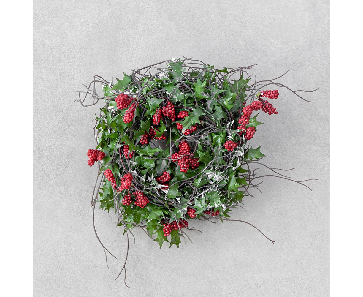 Гірлянда зі штучної зелені завдовжки 300 см стане ефектним елементом святкового оздоблення. Декоративні ягоди та листя створюють багатий, текстурний вигляд, ідеально підходящий для зимових і новорічних композицій. Гнучка основа дозволяє легко адаптувати її до будь-якого простору — від вітрин до банкетних залів. Рекомендовано для оформлення закладів HoReCa, фотозон та івент-декору.
