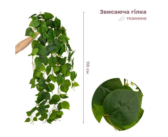Искусственная свисающая ветка "Лиана", зеленая, 110 см