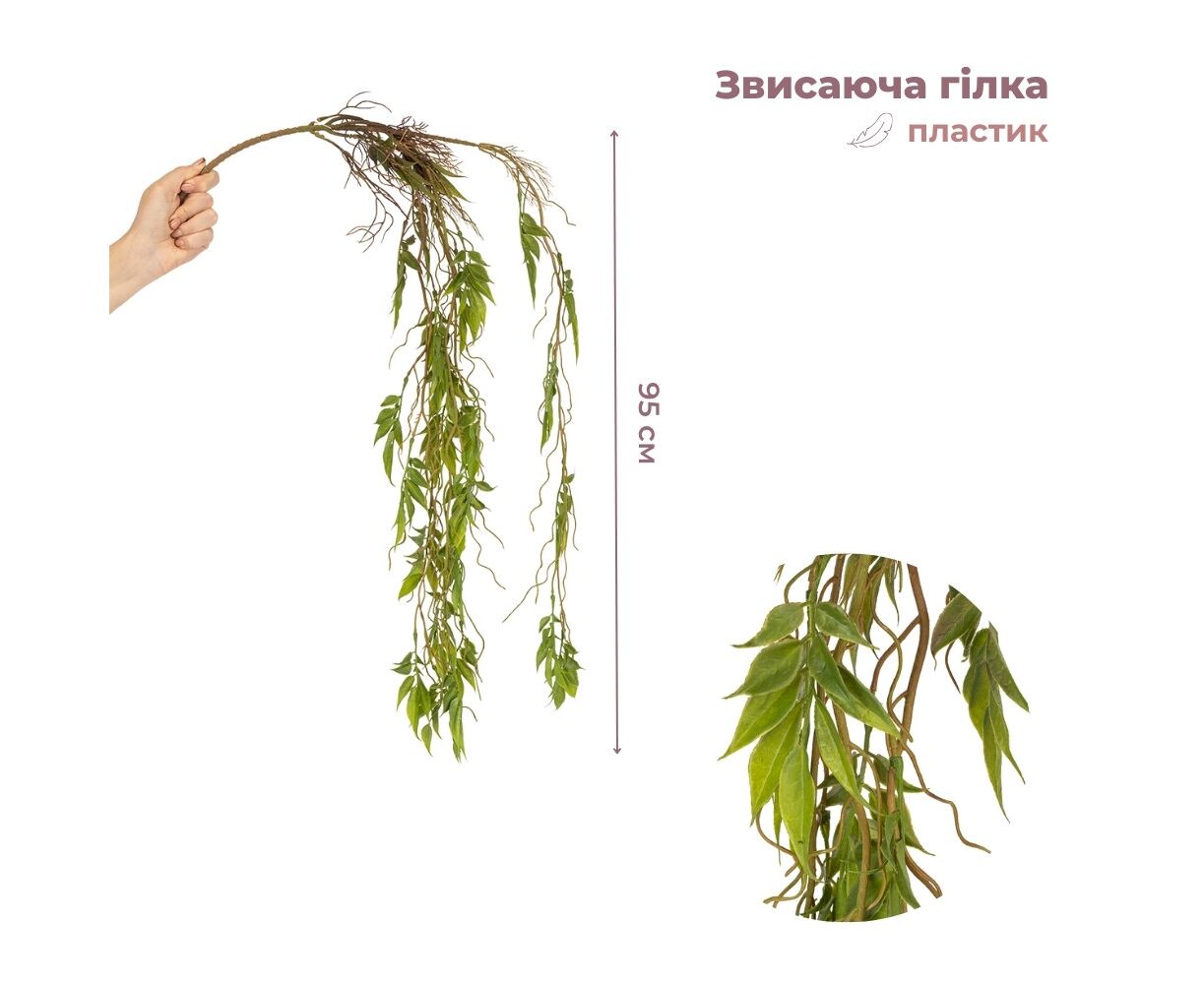 Искусственная свисающая ветка "Зеленый водопад", зеленая, 95 см