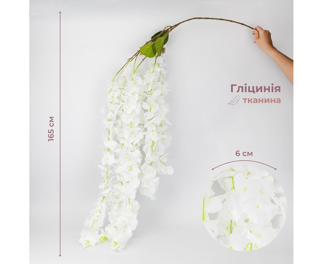 Искусственная свисающая ветвь "Глициния", белая, 165 см