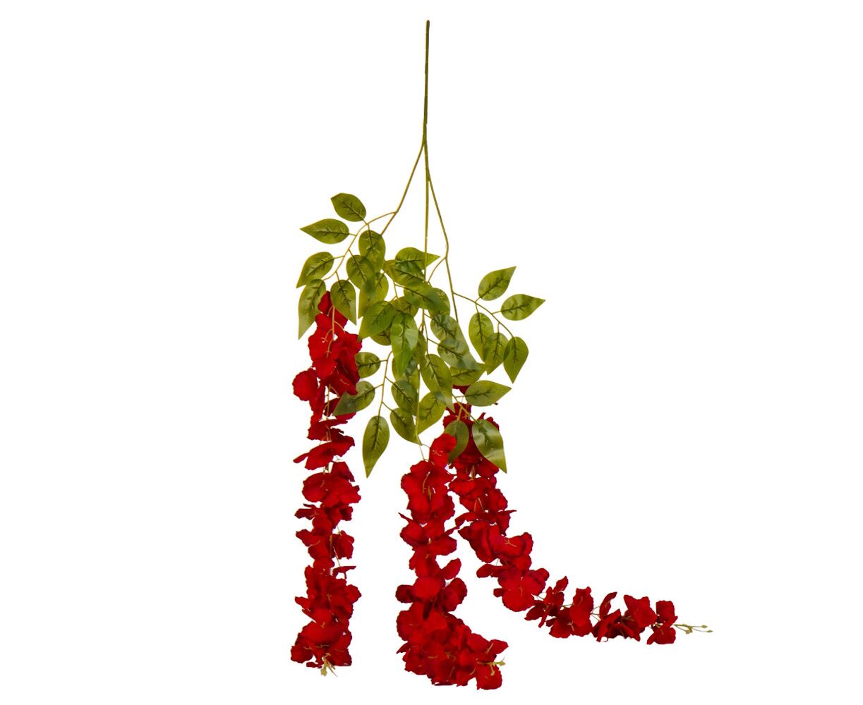 Искусственная свисающая ветвь "Глициния", красная, 103 см