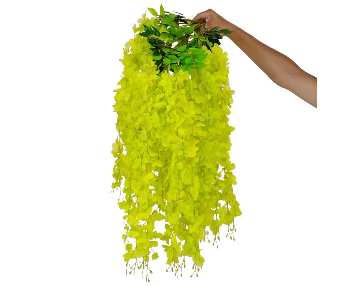 В связке 12 шт. Длина – 110 см. Искусственная свисающая ветвь Глицинии – это репродукция природной ветви со всей ее красотой. Листья на ветке имеют форму, текстуру и оттенки, подобные натуральным листьям. Каждая деталь тщательно проделана, а стебли придают гибкость и возможность моделирования ветки в нужном положении. Искусственная ветвь является прекрасной альтернативой живым растениям, поскольку она сохраняет всю привлекательность, обладает более долговечными свойствами и возможностью использования в различных декоративных целях. Прекрасно впишется в декор любого помещения, букетов, композиций или аранжировки интерьера, добавляя природную свежесть и элегантность.