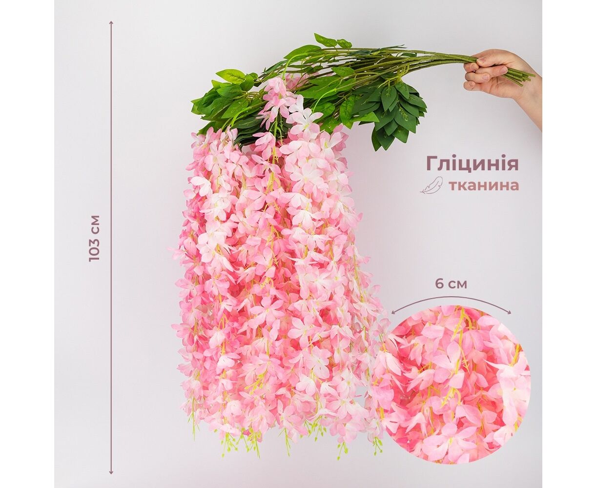 Набор из 12 свисающих веток "Глициния розовая", 103 см