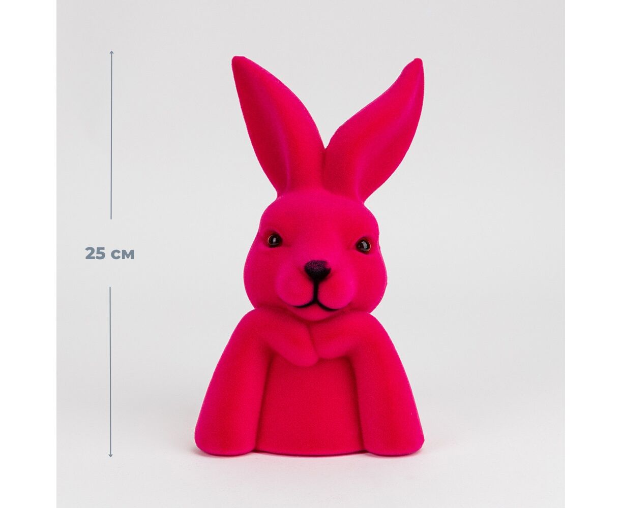Фигурка флоковая "Пасхальный зайчик", темно-розовая, 25 см
