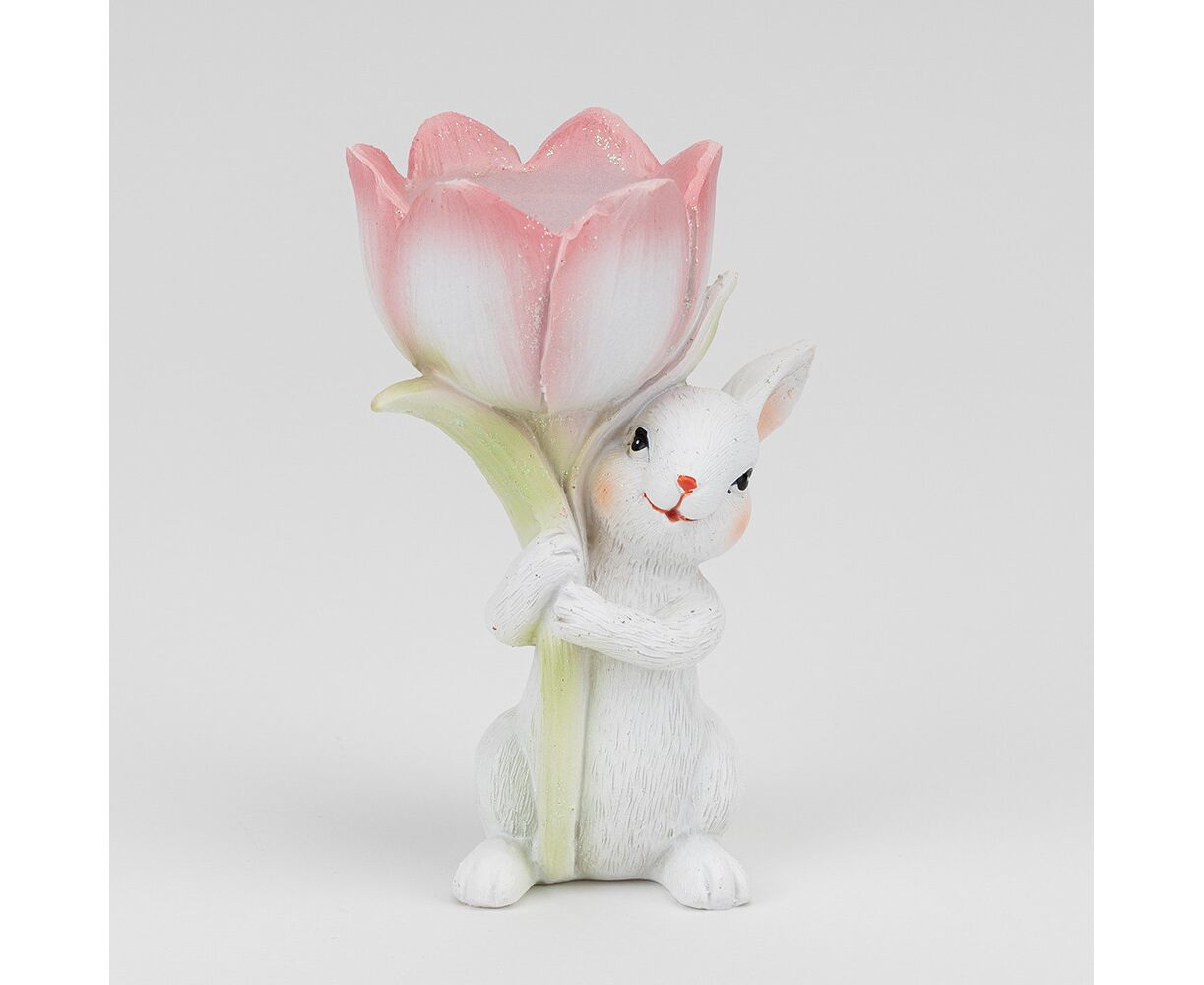 Подсвечник "Кролик с розовым тюльпаном", 12,5 см