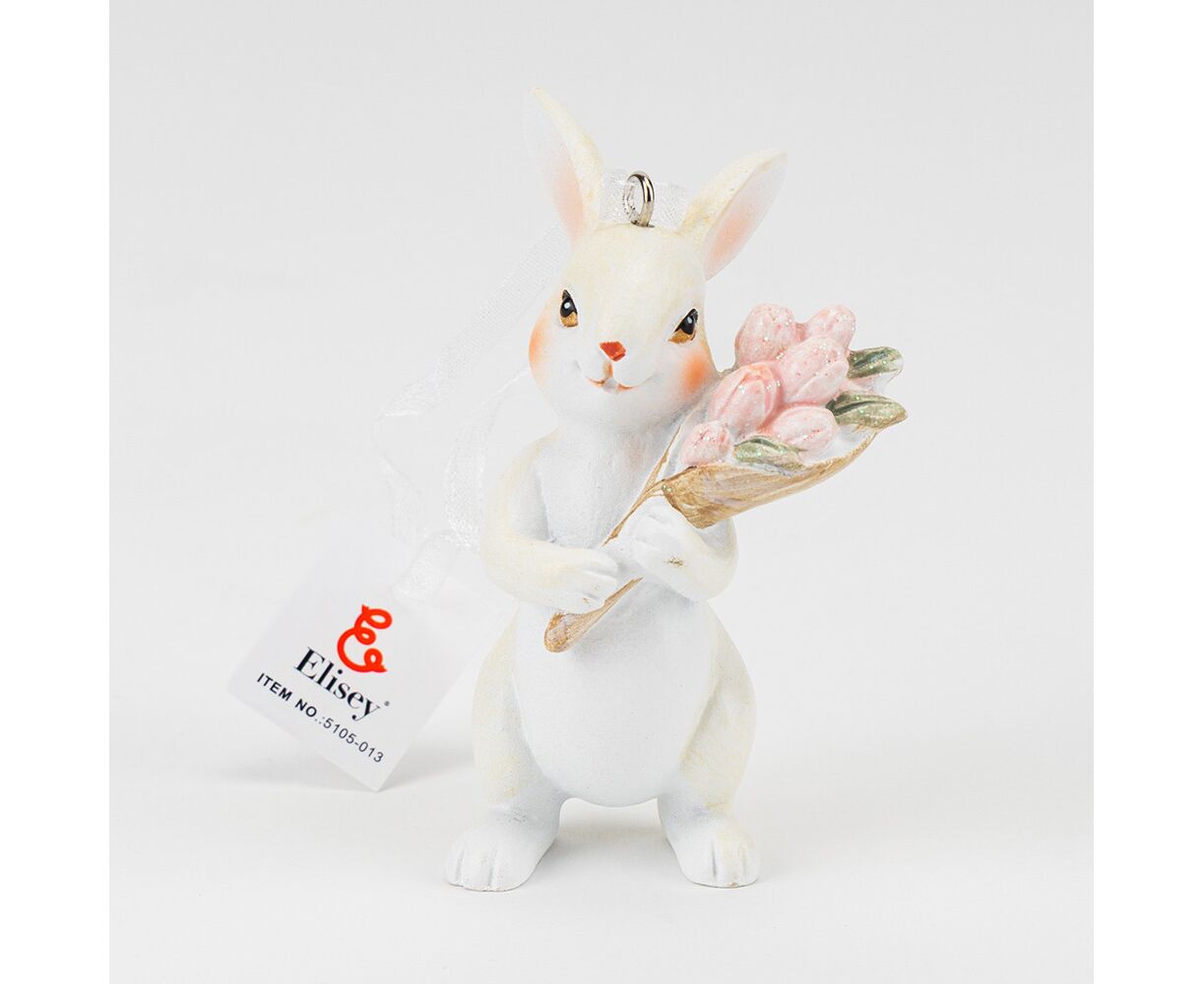 Подвесная статуэтка "Кролик с тюльпанами", 8 см