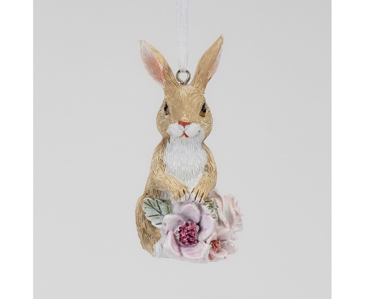 Подвесная статуэтка "Кролик в цветах", 8 см