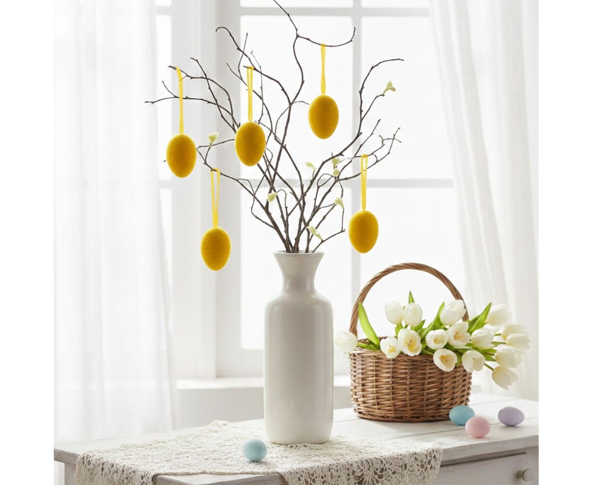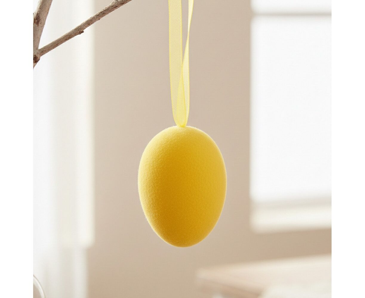 Набор из 5 подвесных флоковых крашанок, желтый, 7 см