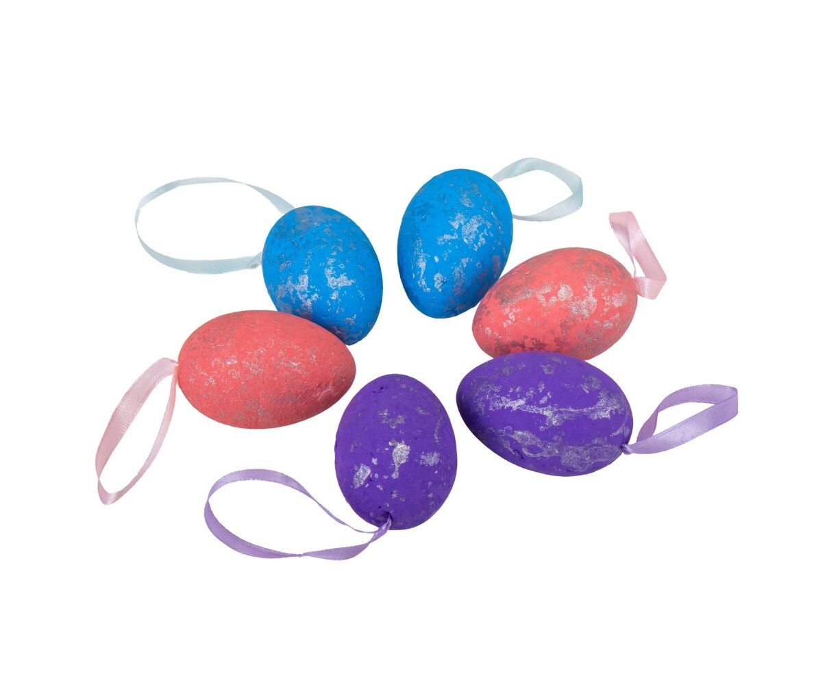 Длина пасхальных яиц - 6 см, с лентой - 13 см. В наборе 6 шт. Набор цветных пасхальных яиц - это не только стильный элемент декора, но и прекрасный способ создать праздничное настроение. Изготовленные из пластика, эти пасхальные яйца имеют яркие и насыщенные цвета. Легкие в уходе и очень практичные, они станут отличным дополнением к пасхальному декору в кафе, фотостудиях, витринах магазинов или дома!