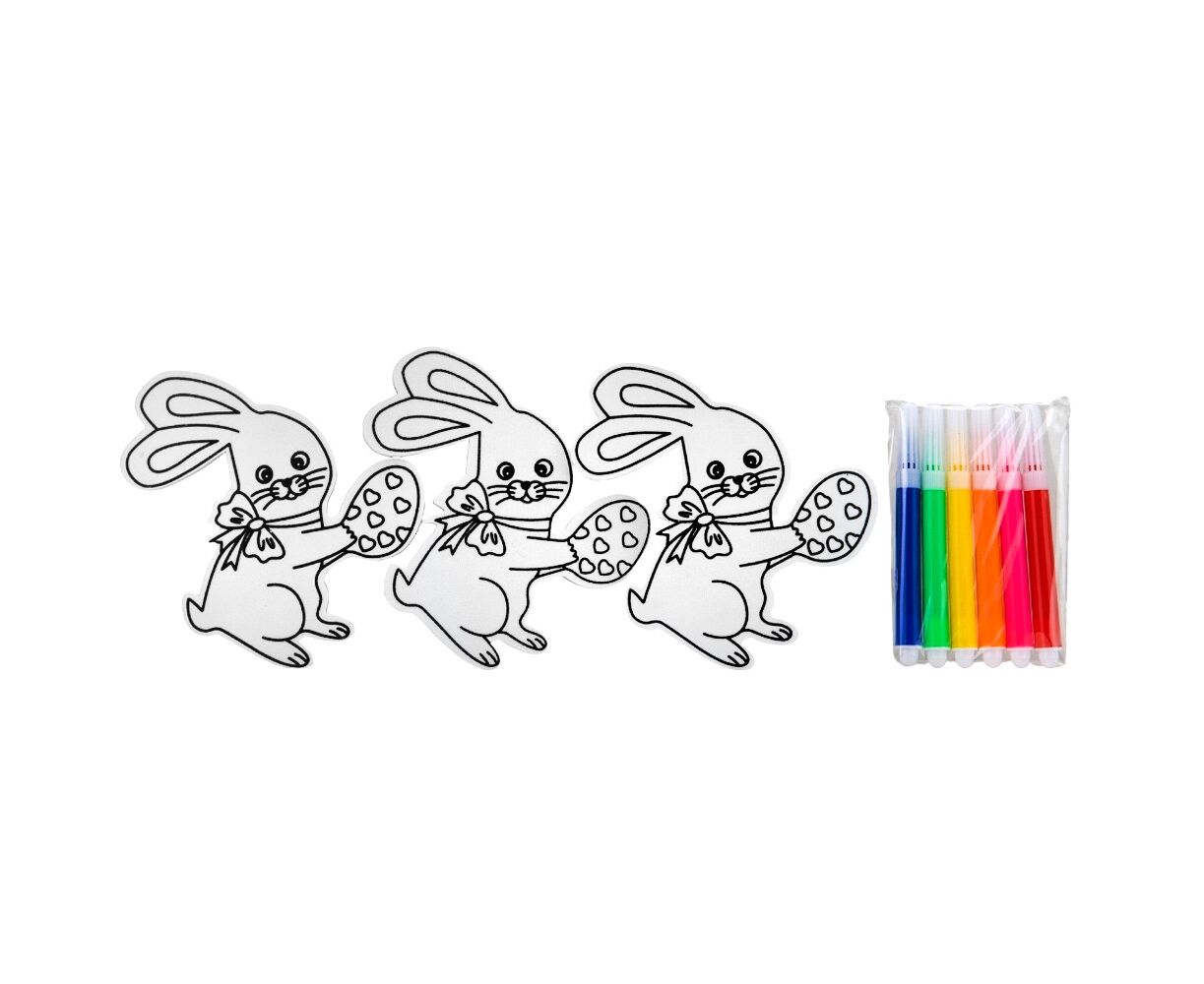 Набор кроликов с фломастерами "Раскраска", 3 шт.
