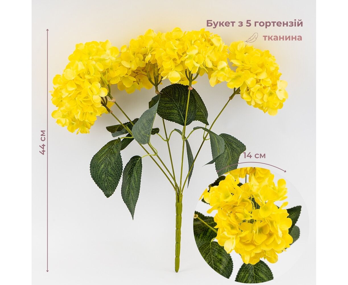 Букет гортензий, 5 бутонов, желтый, 44 см