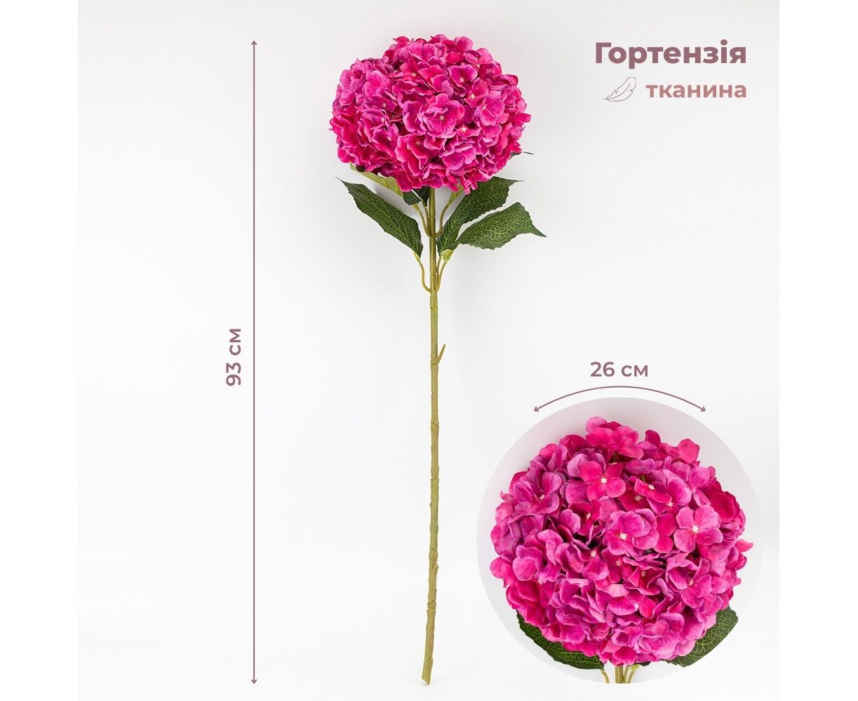 Высота – 93 см. Самый большой бутон на рынке: с диаметром 26 см, этот бутон создает эффект настоящего цветочного облака. Вам не понадобится много веток для создания WOW-эффекта! Бутон изготовлен из высококачественной ткани, точно имитирующей текстуру и форму настоящих лепестков. Искусственные гортензии – это отличный вариант для создания красивого и длительного декора без необходимости в постоянном уходе. Выглядят очень реалистично и имеют естественный вид, что придает привлекательности любому интерьеру или мероприятию. Они могут использоваться в букетах, композициях, а также для декорирования различных помещений, от дома до HoReCa.