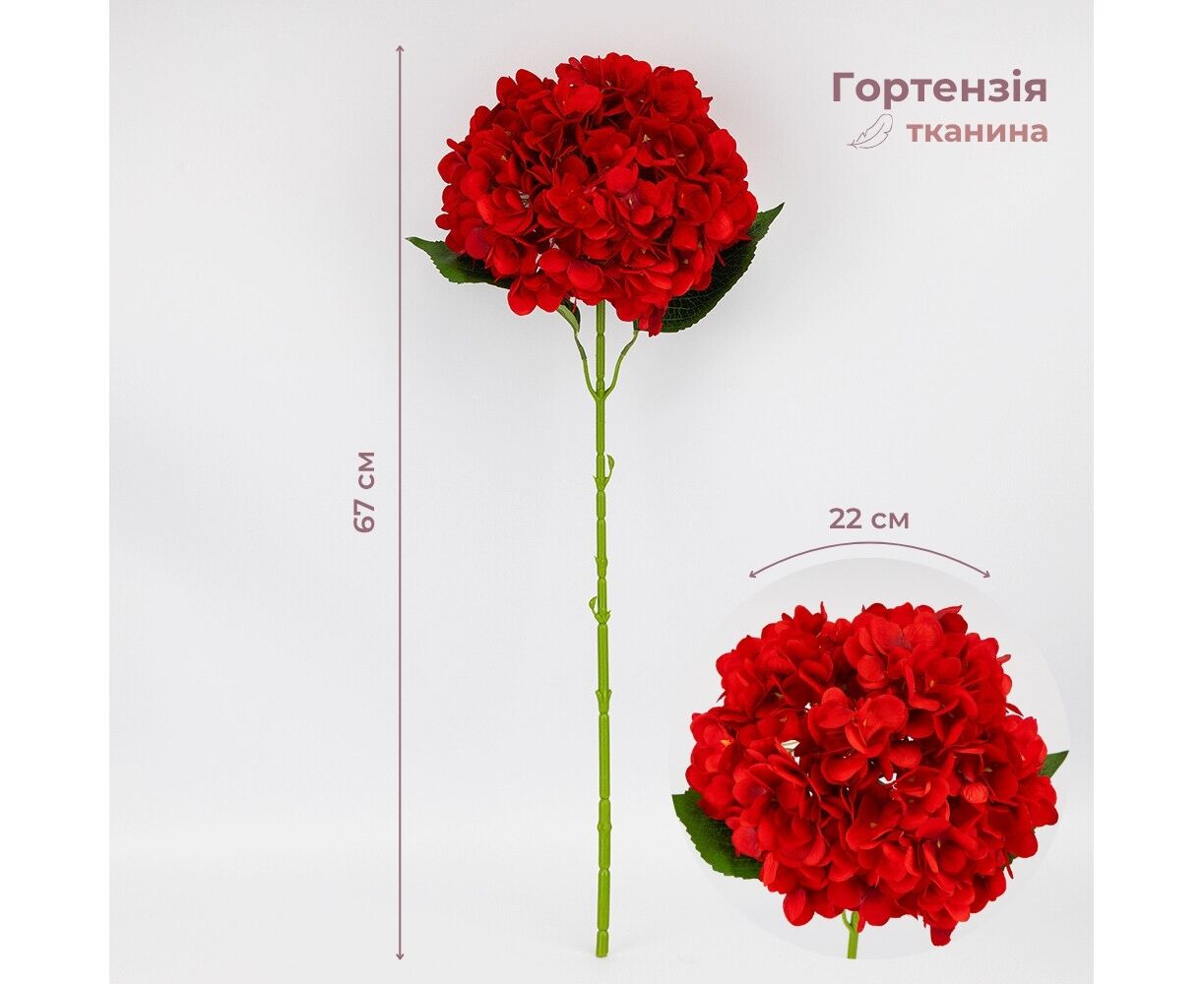 Искусственная гортензия, красная, 67 см