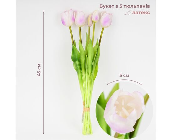 Букет латексных тюльпанов, 5 бутонов, бело-фиолетовый, 45 см