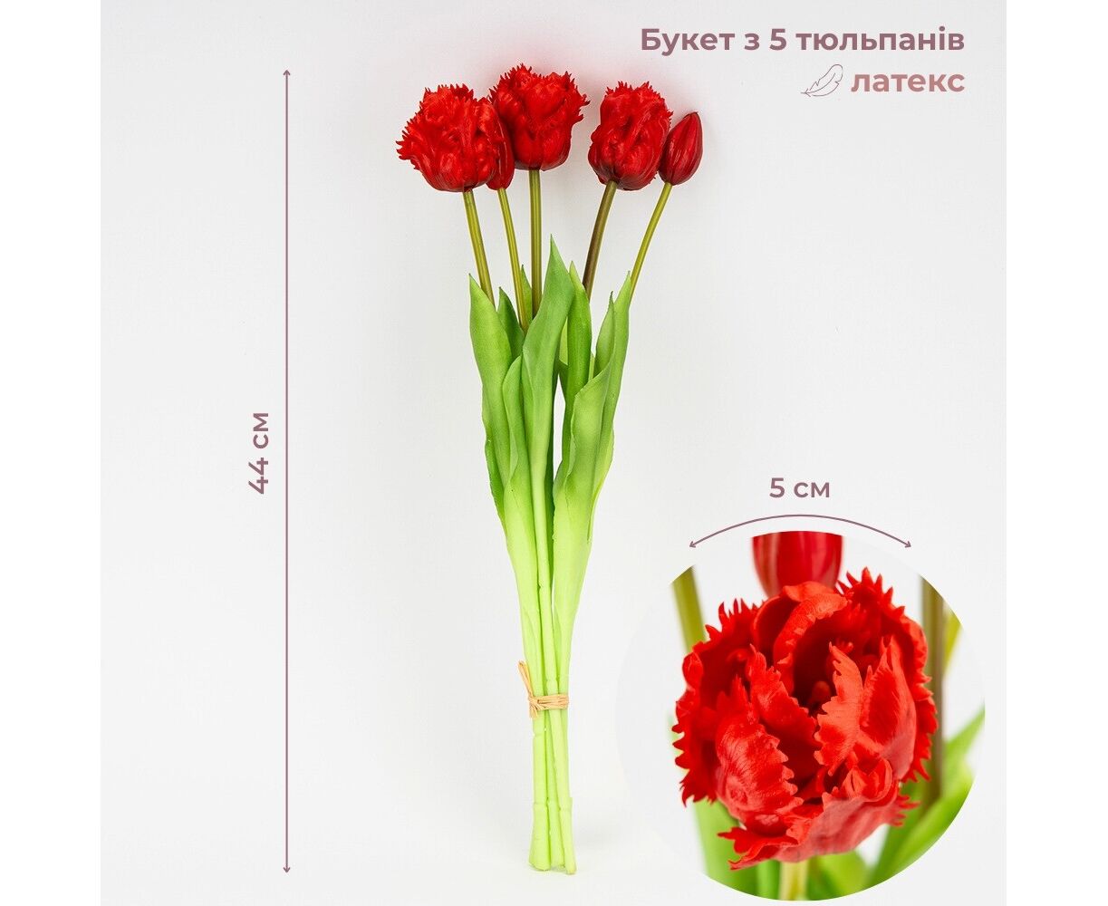 Букет латексных тюльпанов, 5 бутонов, красный, 44 см