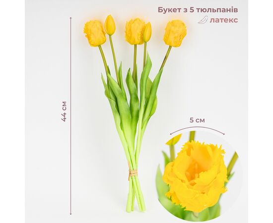 Букет латексных тюльпанов, 5 бутонов, желтый, 44 см