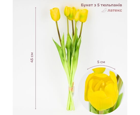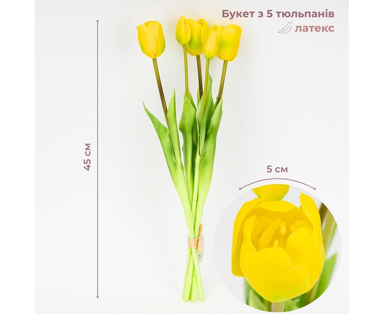 Букет латексных тюльпанов, 5 бутонов, желто-зеленый, 45 см