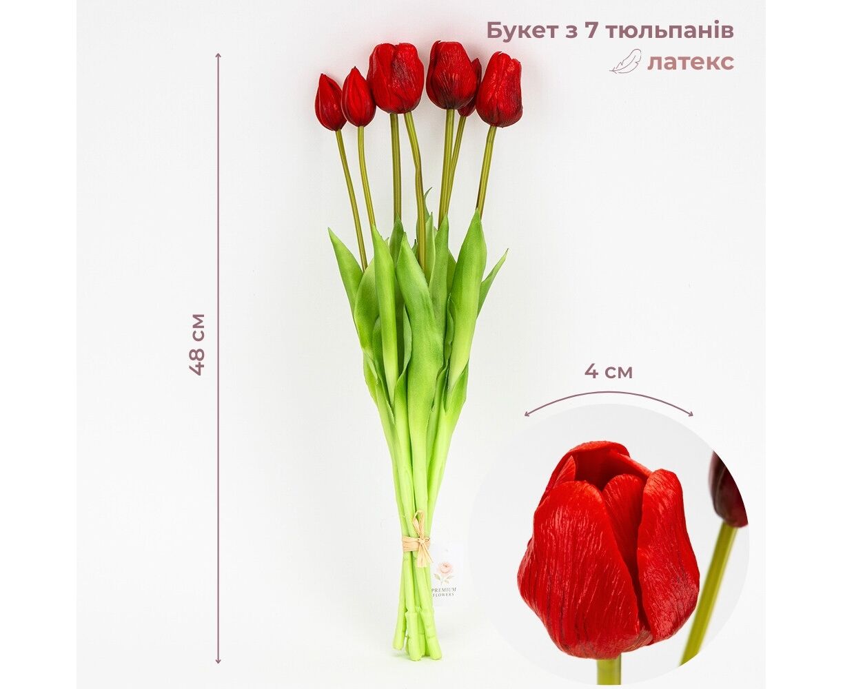 Букет латексных тюльпанов, 7 бутонов, красный, 48 см