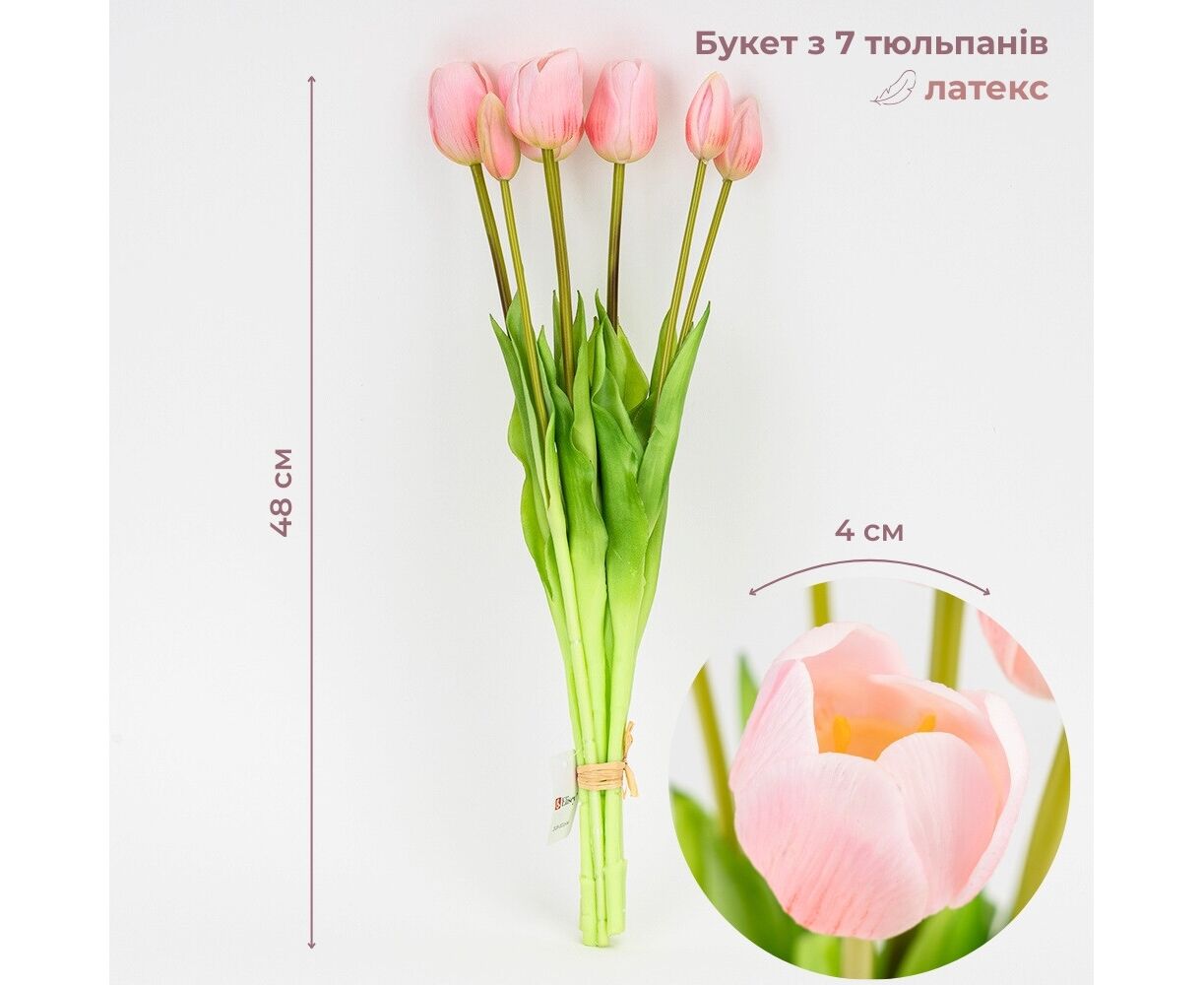 Букет латексных тюльпанов, 7 бутонов, нежно-розовый, 48 см