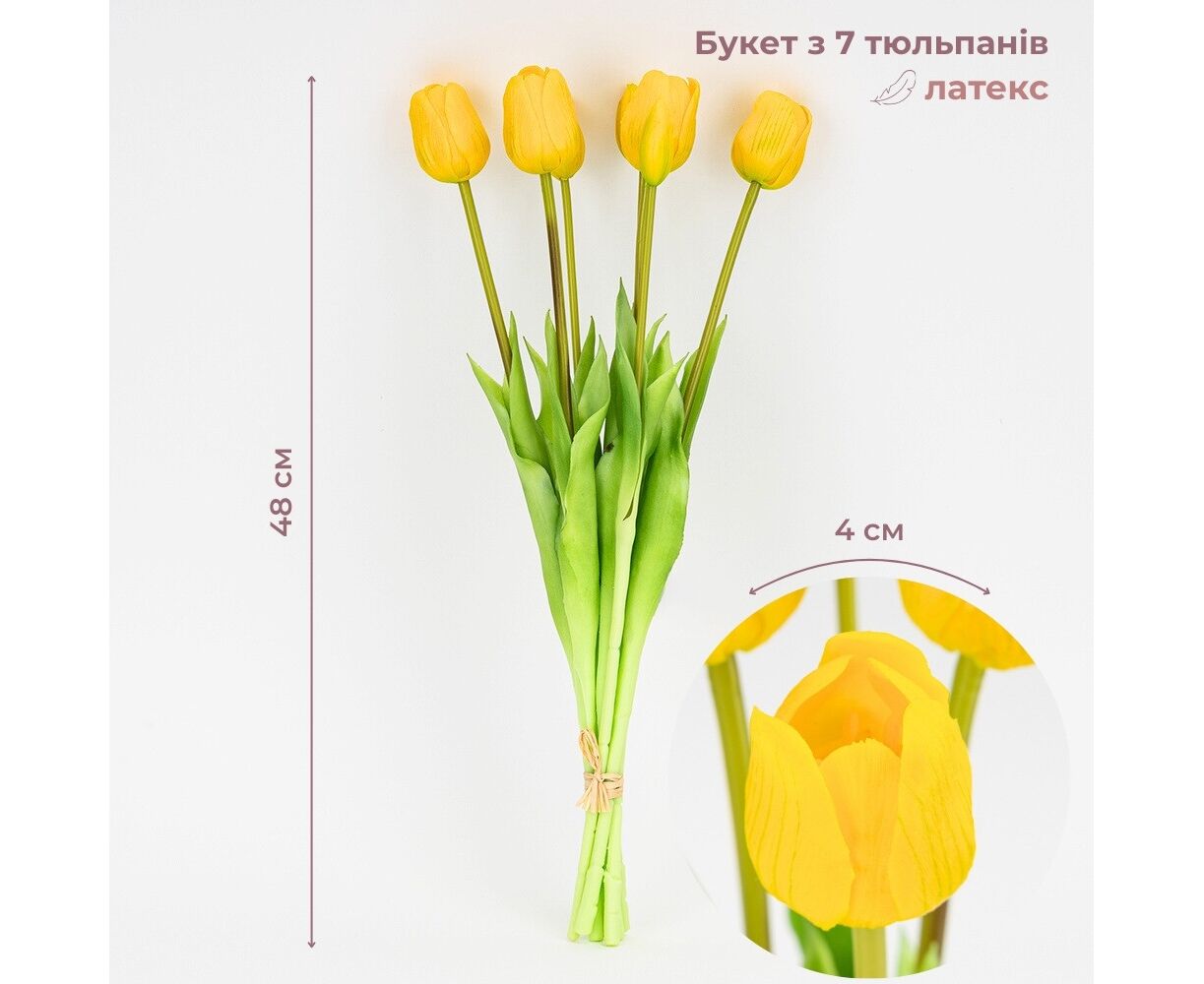 Букет латексных тюльпанов, 7 бутонов, желтый, 48 см