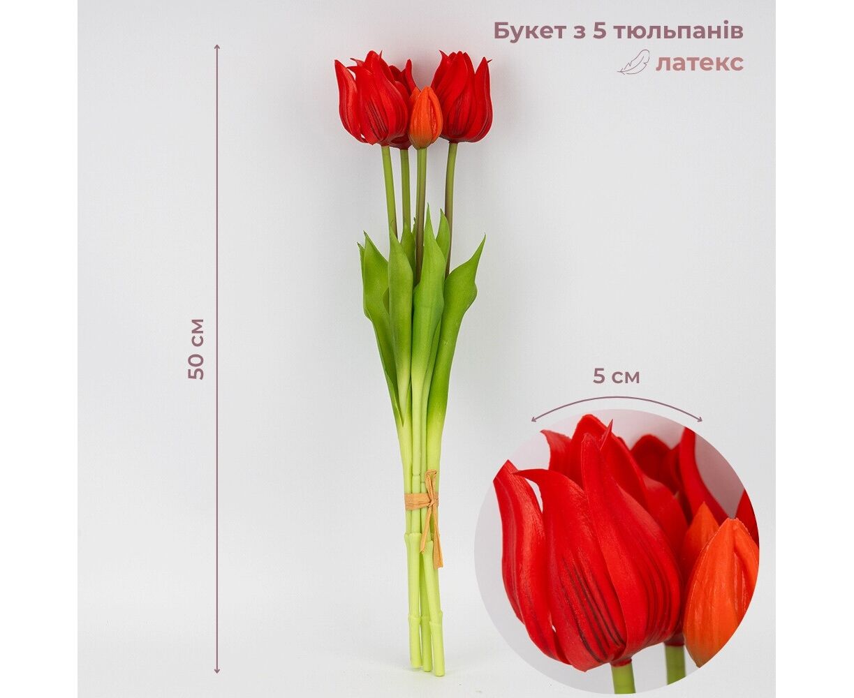 Букет латексных тюльпанов, 5 бутонов, красный, 50 см