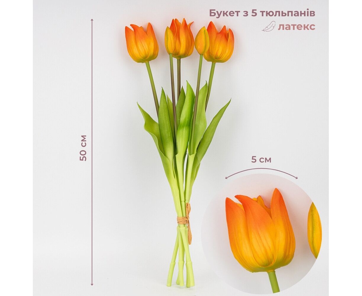 Букет латексных тюльпанов, 5 бутонов, оранжевый, 50 см