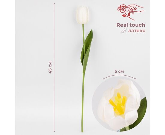 Искусственный тюльпан с эффектом живого прикосновения, белый, 45 см