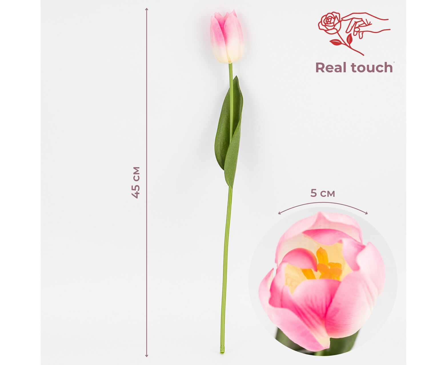 Искусственный тюльпан с эффектом живого прикосновения, кремово-розовый, 45 см