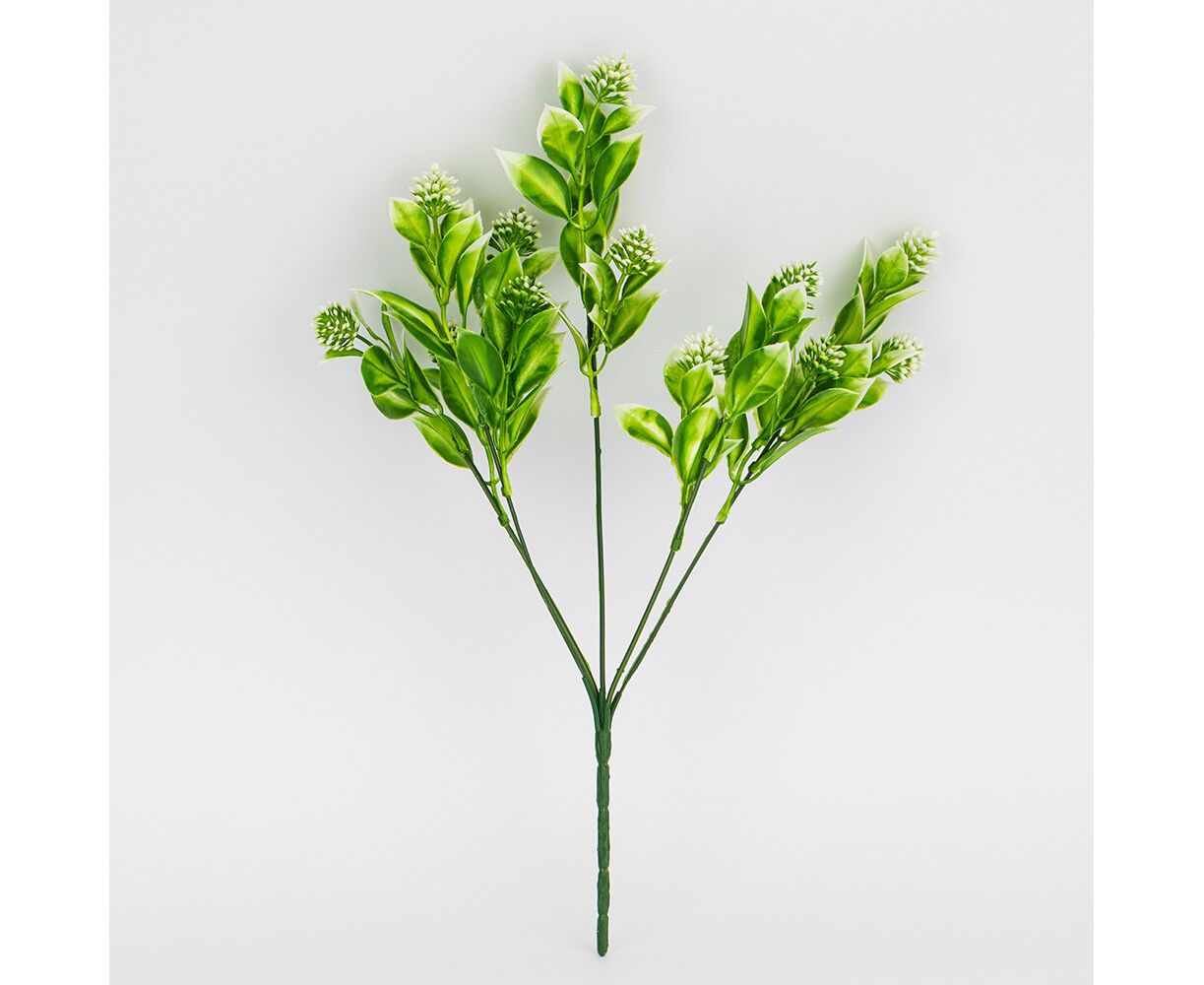 Минимальное количество для товара "Искусственная зеленая ветвь с белыми соцветиями, 32 см" 1.