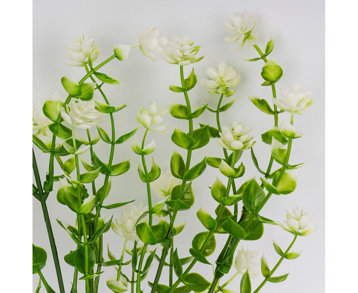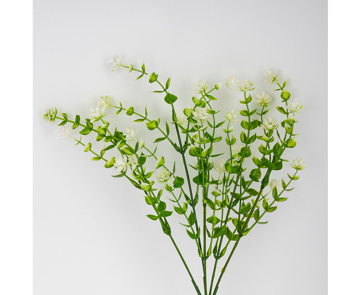 Искусственная зеленая ветвь с белыми соцветиями, 35 см
