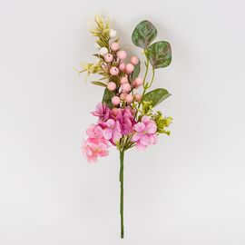 Материал: Пластик Высота: 38 Эта декоративная цветочная веточка высотой 38 см – изящный элемент для создания весеннего настроения, оформления праздничных витрин, фотозон и уютных интерьерных композиций. Сочетание нежных розовых соцветий, деликатных ягод и сочных зеленых листьев...