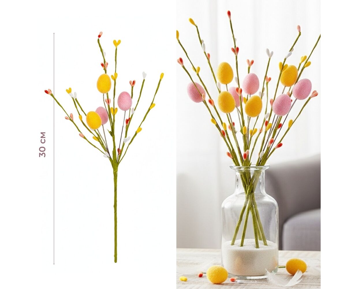 Пасхальная декоративная веточка "Крашанки", 30 см