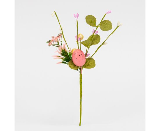 Пасхальная декоративная веточка "Розовая крашанка с ягодами", 26 см