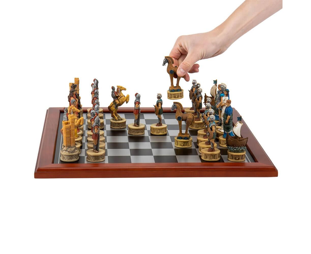Ищите идеальный подарок для любимого, папы или шефа? Тогда этот шахматный набор от известного итальянского бренда Veronese «Троя» – идеальный вариант. Шахматы выполнены именитыми мастерами и достаточно раз посмотреть, чтобы увидеть насколько детально проработаны все детали отделки и насколько изысканно и дорого выглядят все фигуры и игровое поле. Такой подарок однозначно порадует его владельца, а оригинальные фигуры в виде персонажей Древней Трои помогут погрузиться в невероятную атмосферу военного планирования и стратегии ведения игры. Шахматы идут в подарочной упаковке, что сразу делает ее идеальным подарком. Шахматная доска изготовлена из полистоуна (искусственного камня) и огранена деревянной рамой. Материал фигур – полистоун. Благодаря надежной упаковке с углублениями для самых маленьких деталей, Вы можете быть уверенными в сохранности при транспортировке. Размер игровой доски – 48х48 см. Самая высокая фигура – 11,7 см VERONESE