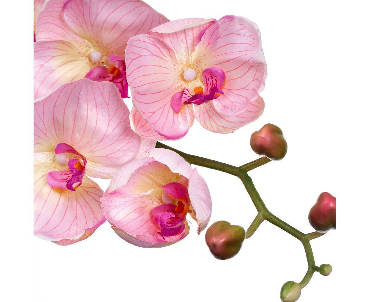 Искусственные орхидеи очень популярны у дизайнеров и оформителей интерьера. Оформляют торговые центры, витрины, рестораны, отели и частные дома. Выглядит достаточно натурально можно использовать для создания композиций ручной работы. Такая композиция может стать отличным подарком и просто украшением комнаты. Высота -137 см, бутона - 16 см.