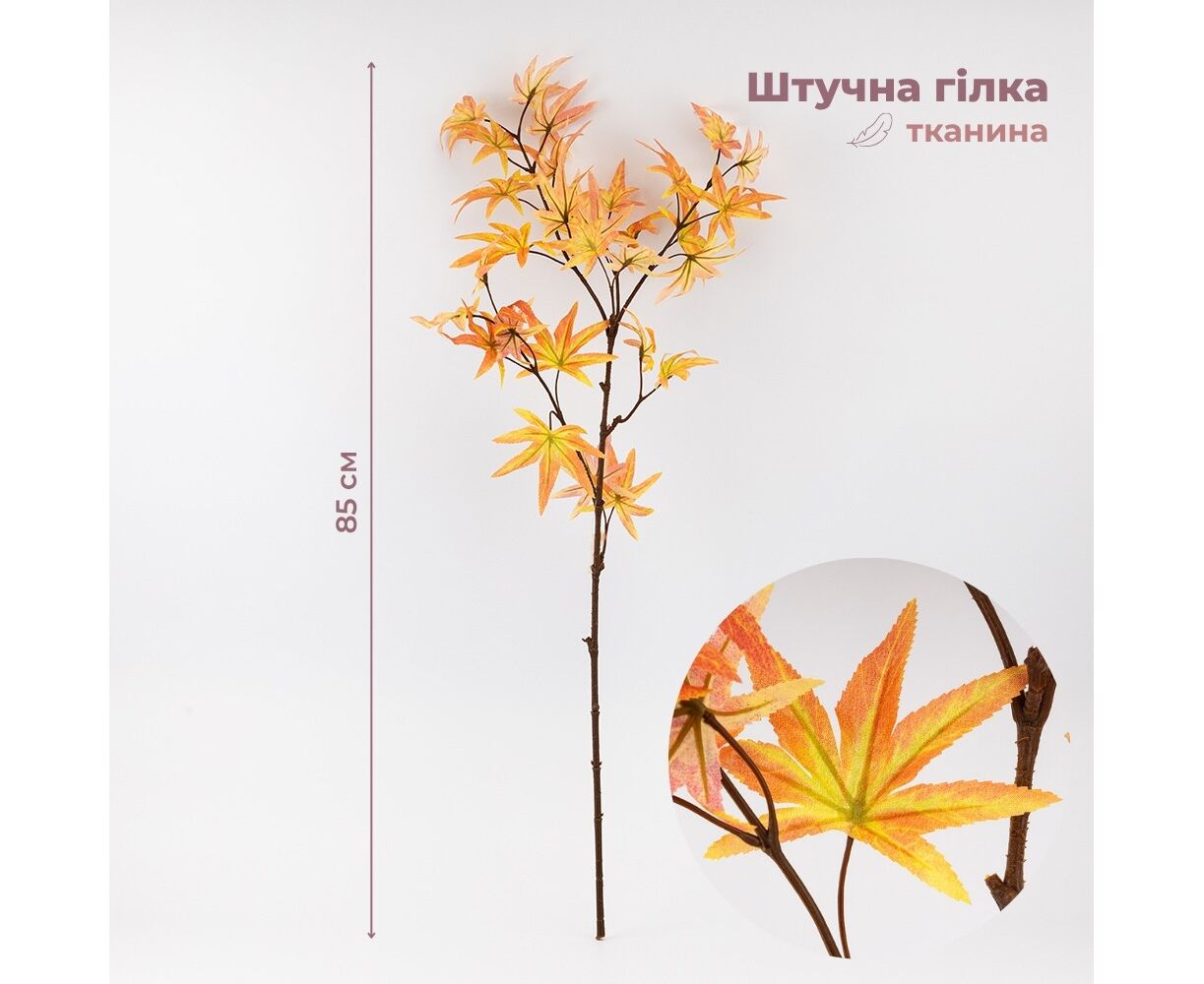 Искусственная ветка "Клен осенний", желтая, 85 см