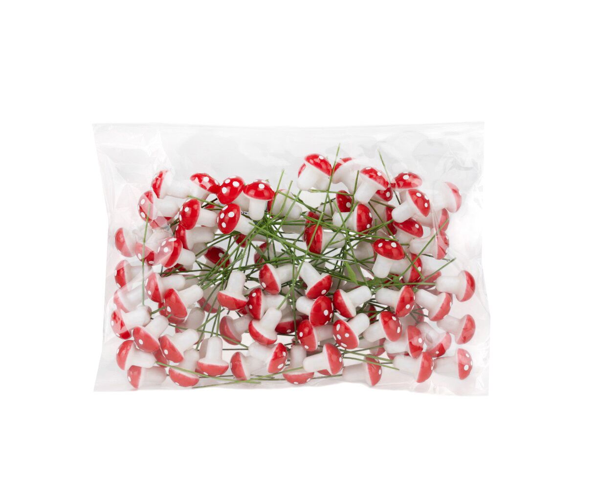 Набор декоративных грибов "Красные шляпки", 100 шт, 2 см
