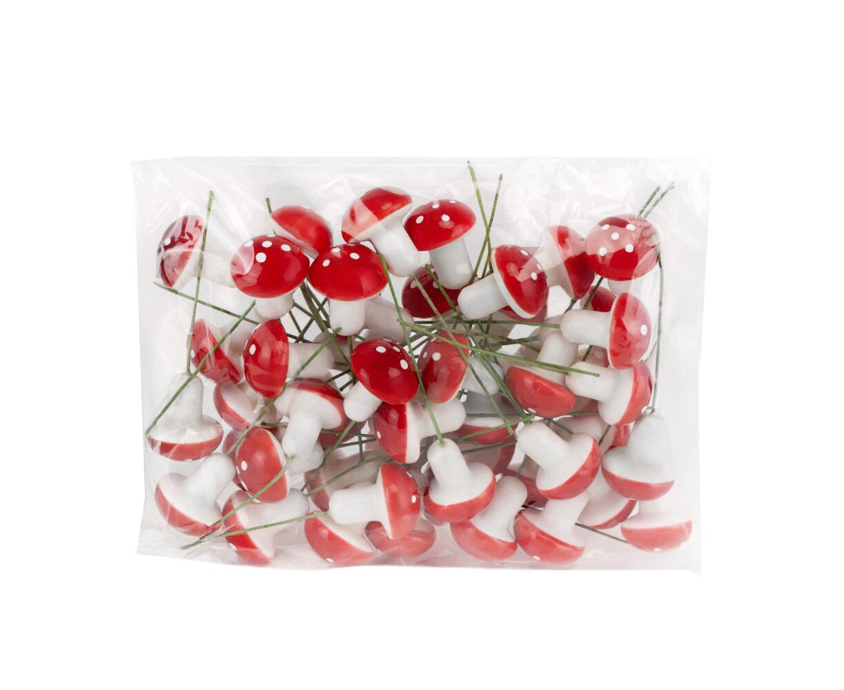 Набор декоративных грибов "Красные шляпки", 50 шт, 3 см
