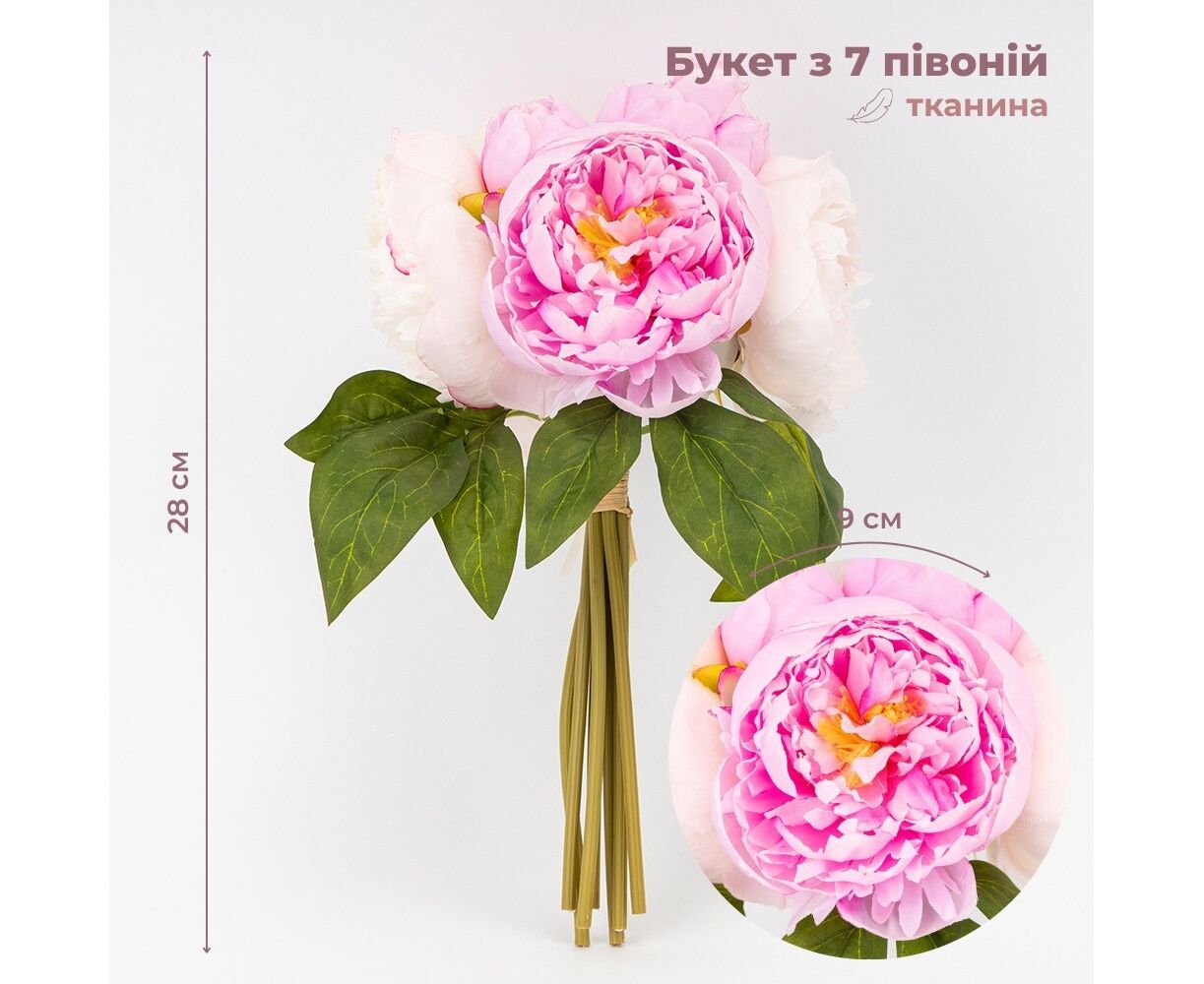 Букет пионов, 7 бутонов, пудрово-лиловый, 28 см СПАСЕННАЯ ПОЗИЦИЯ